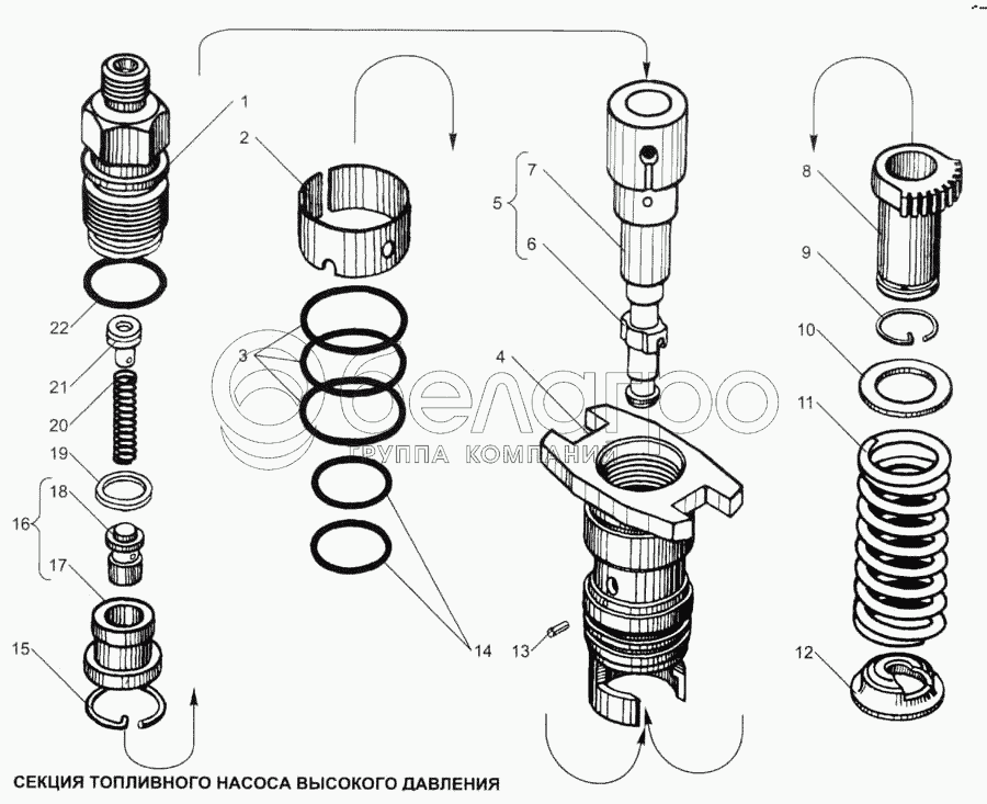 Каталог запасных частей к технике: ЯМЗ-7511. Секция топливного насоса
