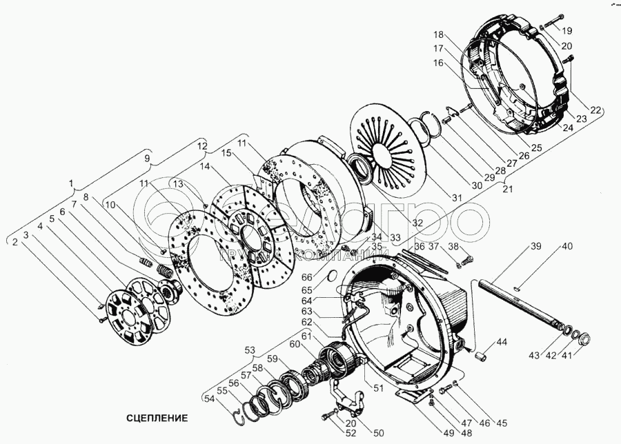 Каталог запасных частей к технике: ЯМЗ-7511. Сцепление