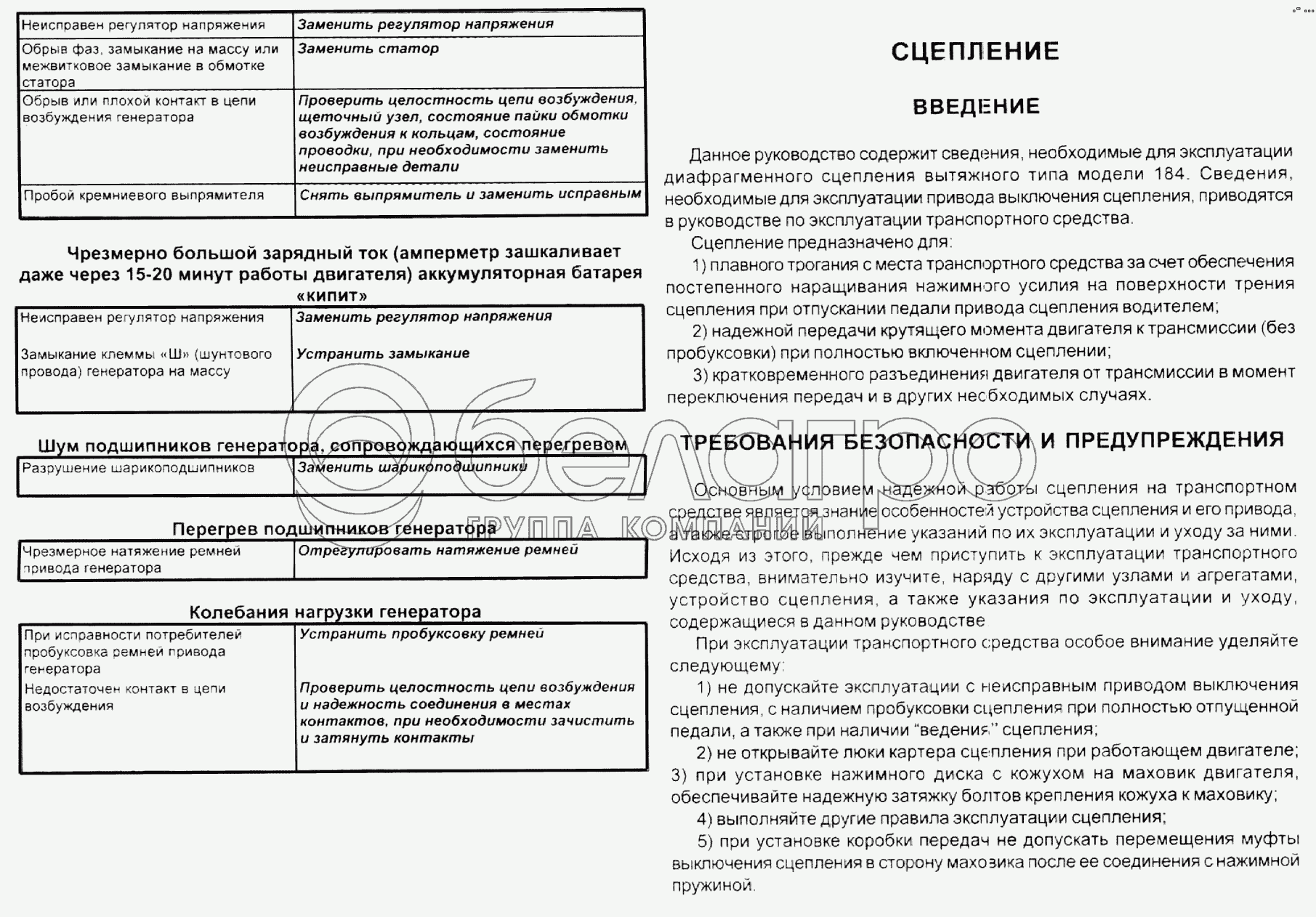 Каталог запасных частей к технике: ЯМЗ-7511. Сцепление. Требования безопасности и предупреждения