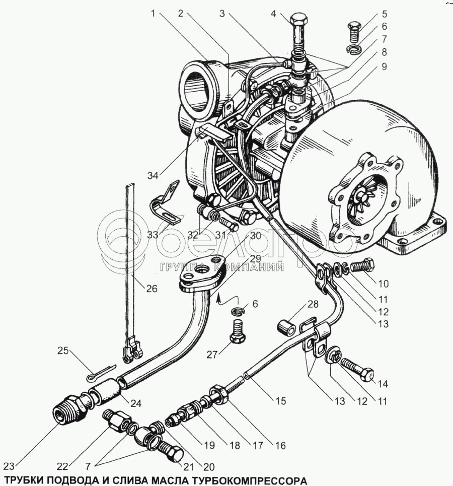 Каталог запасных частей к технике: ЯМЗ-7511. Трубки подвода и слива масла турбокомпрессора