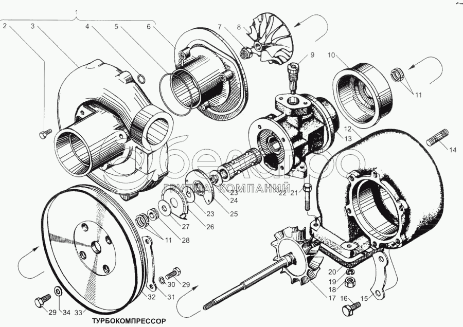 Каталог запасных частей к технике: ЯМЗ-7511. Турбокомпрессор