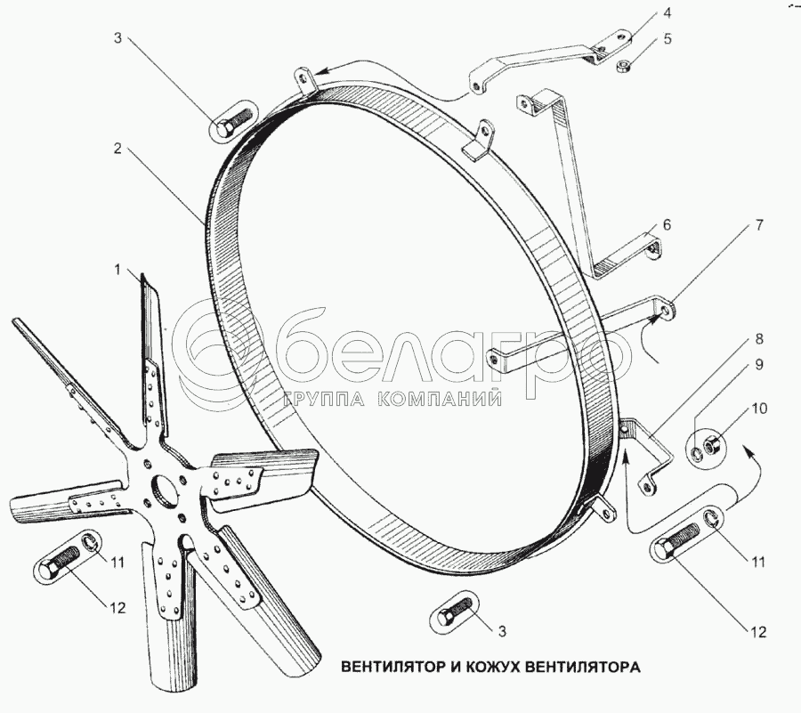 Каталог запасных частей к технике: ЯМЗ-7511. Вентилятор и кожух вентилятора
