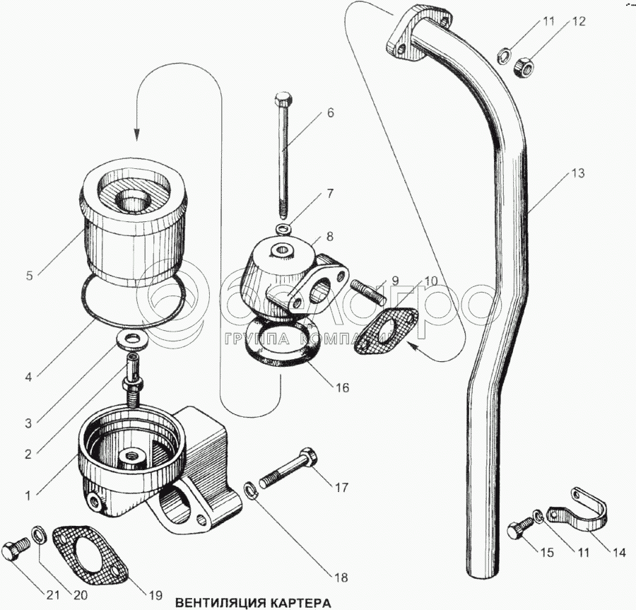 Каталог запасных частей к технике: ЯМЗ-7511. Вентиляция картера