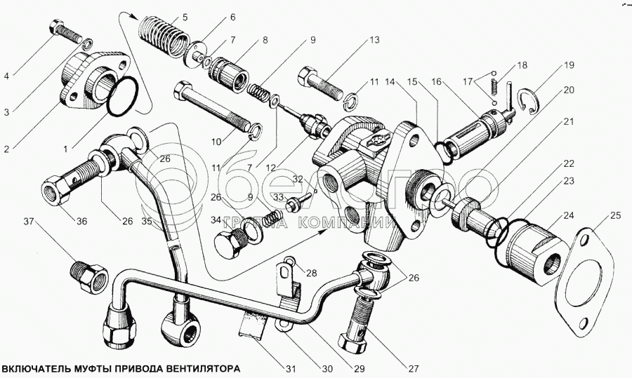 Каталог запасных частей к технике: ЯМЗ-7511. Включатель муфты привода вентилятора