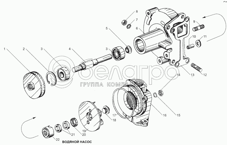 Каталог запасных частей к технике: ЯМЗ-7511. Водяной насос
