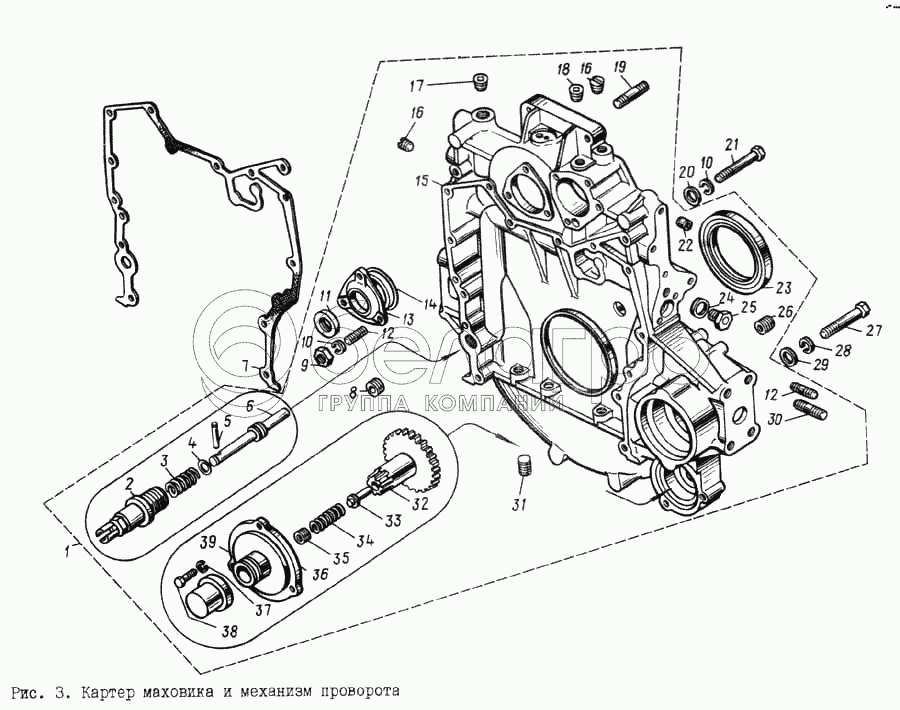 Каталог запасных частей к технике: ЯМЗ-8401.10. Картер маховика и механизм поворота