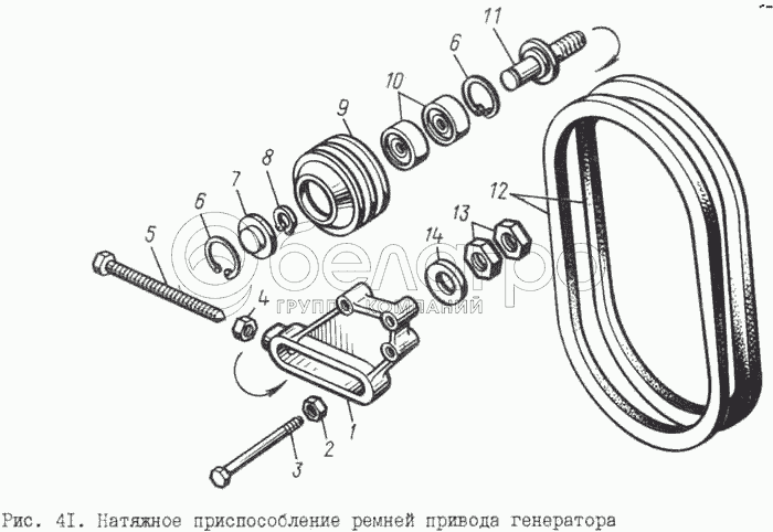 Каталог запасных частей к технике: ЯМЗ-8401.10. Натяжное приспособление ремней привода генератора