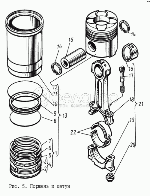 Каталог запасных частей к технике: ЯМЗ-8401.10. Поршень и шатун