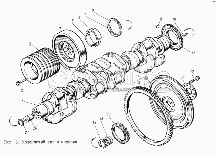 Каталог запасных частей к технике: ЯМЗ-8401.10. Вал коленчатый и маховик