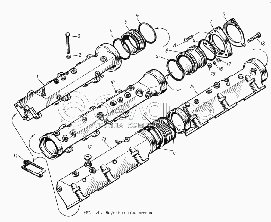 Каталог запасных частей к технике: ЯМЗ-8401.10. Впускные коллекторы