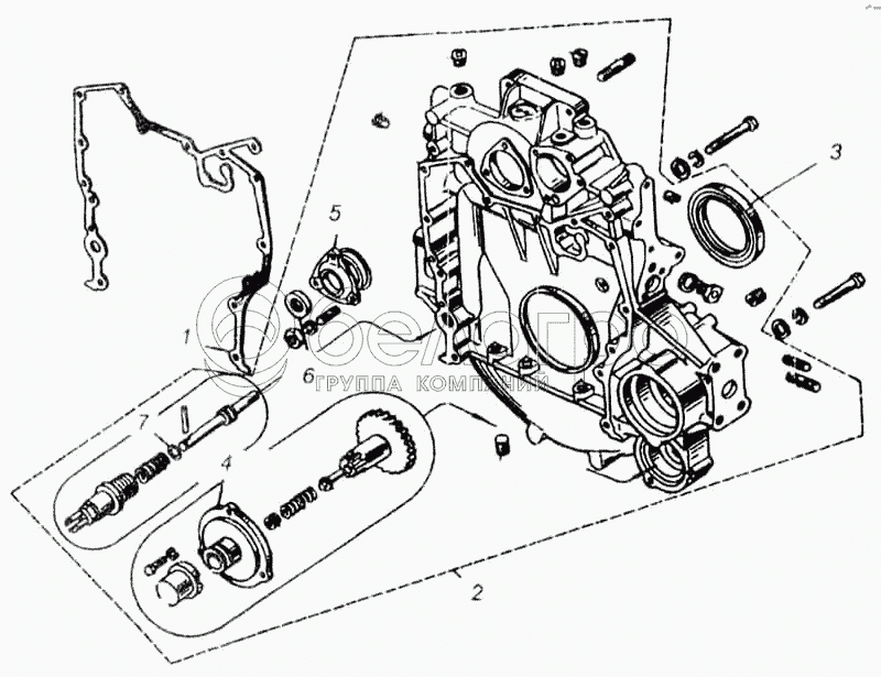 Каталог запасных частей к технике: ЯМЗ-8401. Картер маховика и механизм проворота