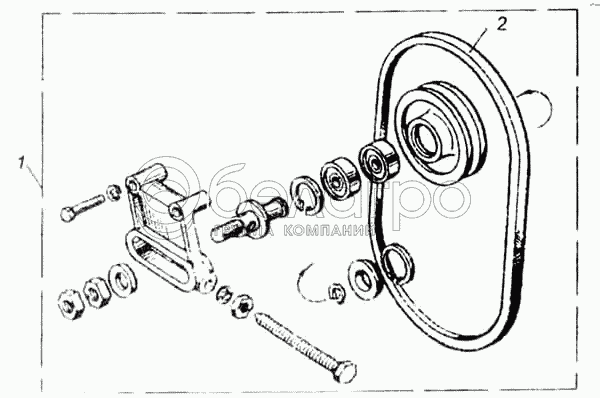 Каталог запасных частей к технике: ЯМЗ-8401. Натяжное приспособление ремня водяного насоса