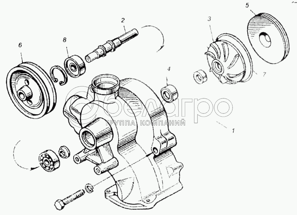 Каталог запасных частей к технике: ЯМЗ-8401. Водяной насос