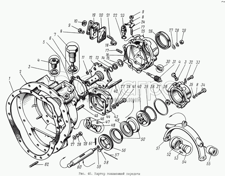 Каталог запасных частей к технике: ЯМЗ-8421.10. Картер понижающей передачи