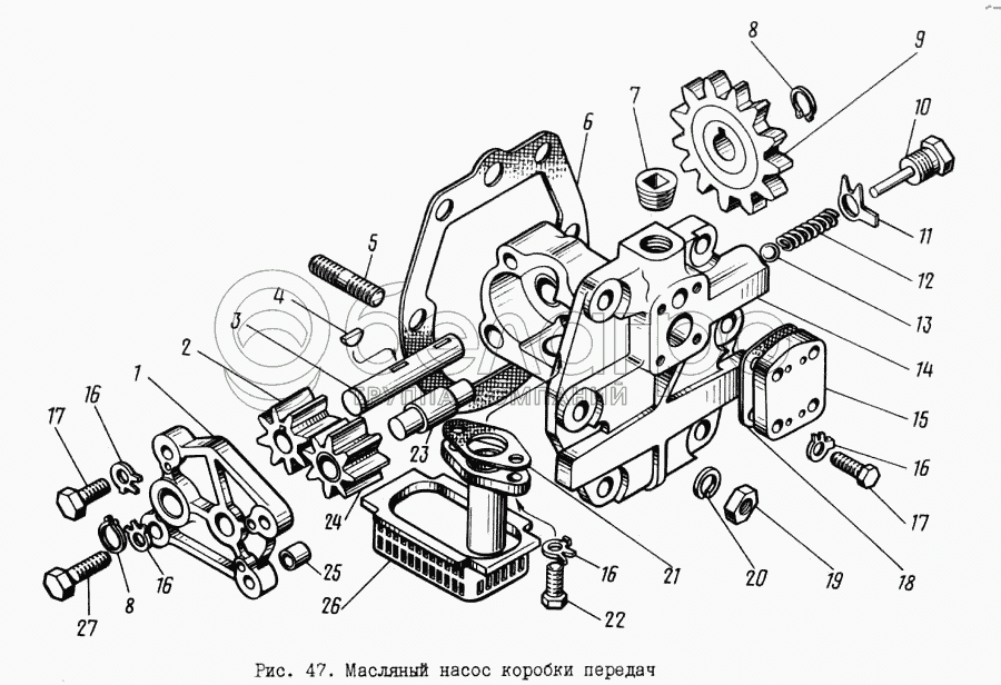 Каталог запасных частей к технике: ЯМЗ-8421.10. Масляный насос коробки передач