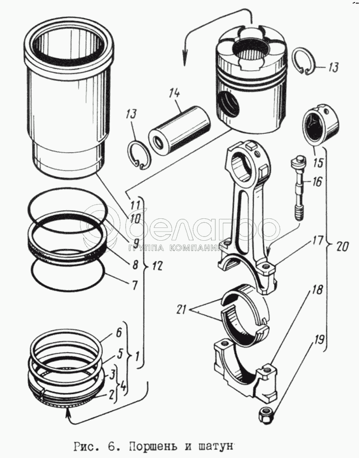 Каталог запасных частей к технике: ЯМЗ-8421.10. Поршень и шатун