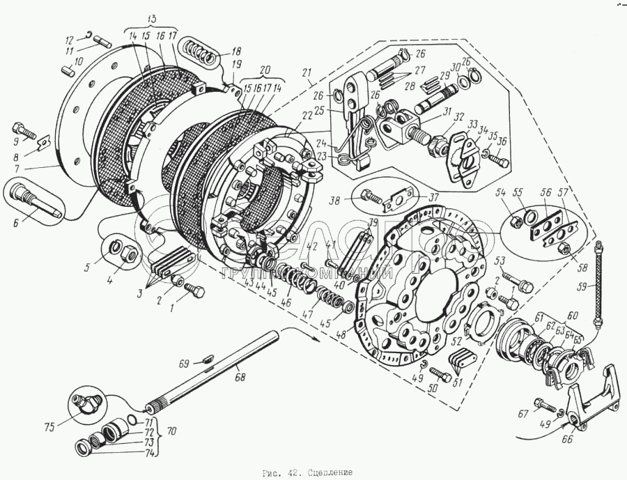 Каталог запасных частей к технике: ЯМЗ-8421.10. Сцепление