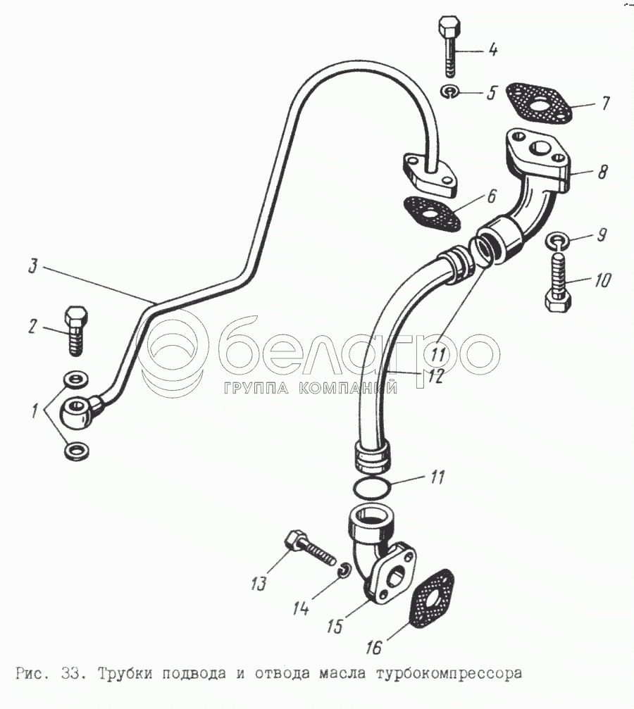 Каталог запасных частей к технике: ЯМЗ-8421.10. Трубки подвода и отвода масла турбокомпрессора