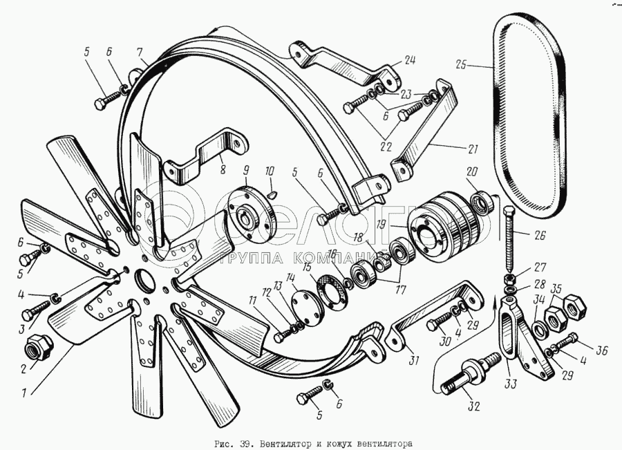 Каталог запасных частей к технике: ЯМЗ-8421.10. Вентилятор и кожух вентилятора