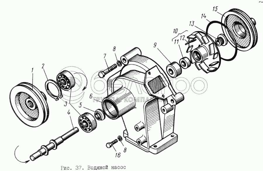 Каталог запасных частей к технике: ЯМЗ-8421.10. Водяной насос