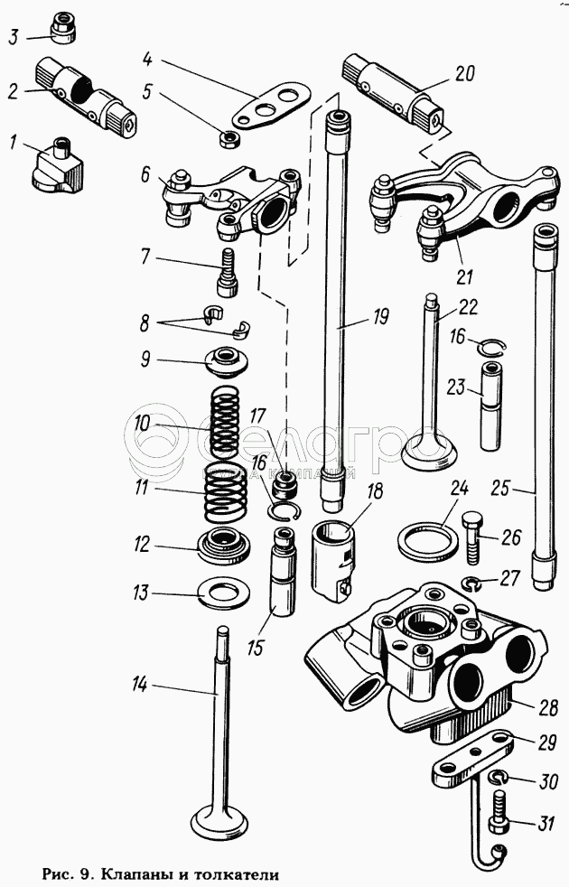Каталог запасных частей к технике: ЯМЗ-8423.10. Клапаны и толкатели