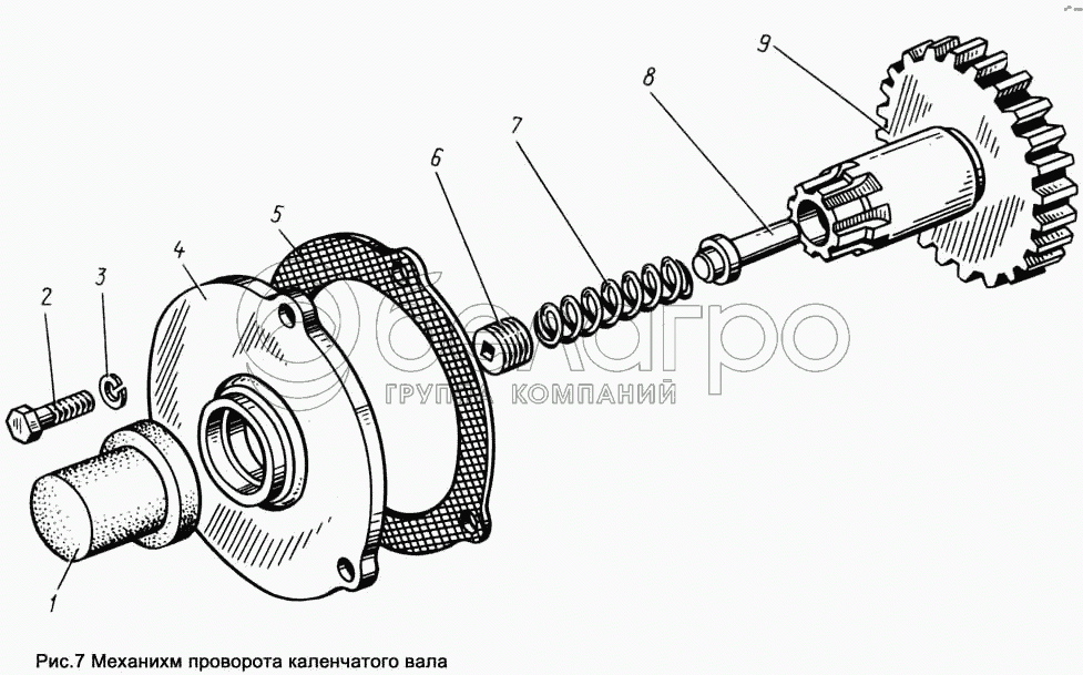 Каталог запасных частей к технике: ЯМЗ-8423.10. Механизм проворота коленчатого вала