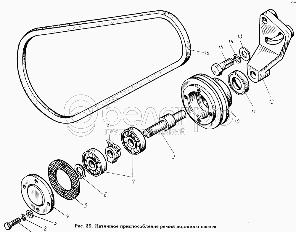 Каталог запасных частей к технике: ЯМЗ-8423.10. Натяжное приспособление ремня насоса