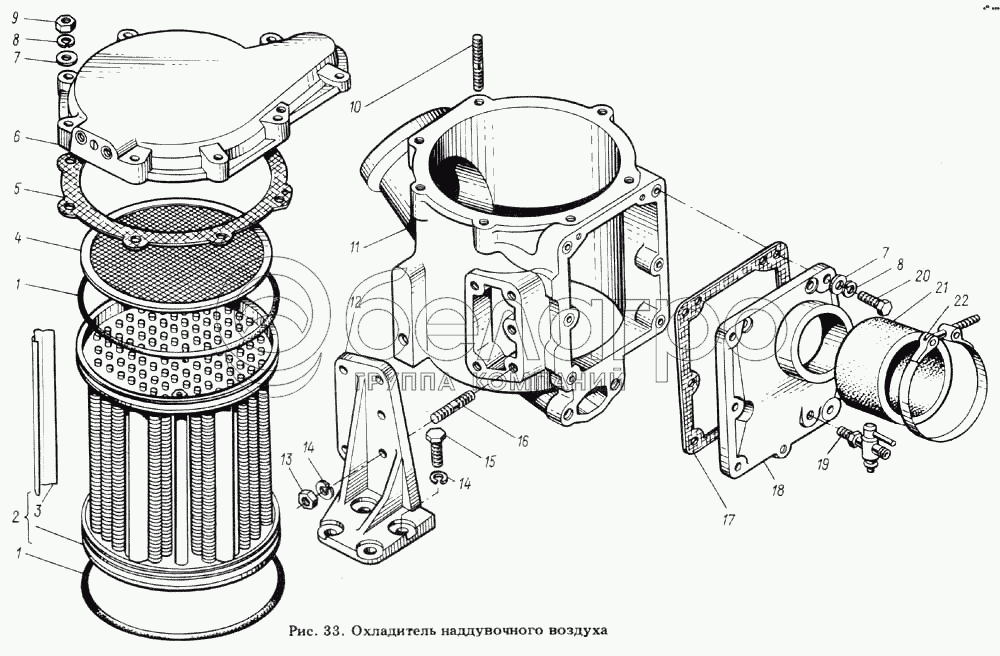 Каталог запасных частей к технике: ЯМЗ-8423.10. Охладитель наддувочного воздуха