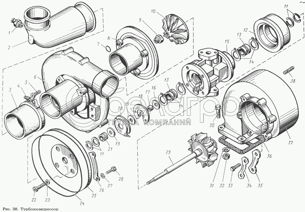 Каталог запасных частей к технике: ЯМЗ-8423.10. Турбокомпрессор