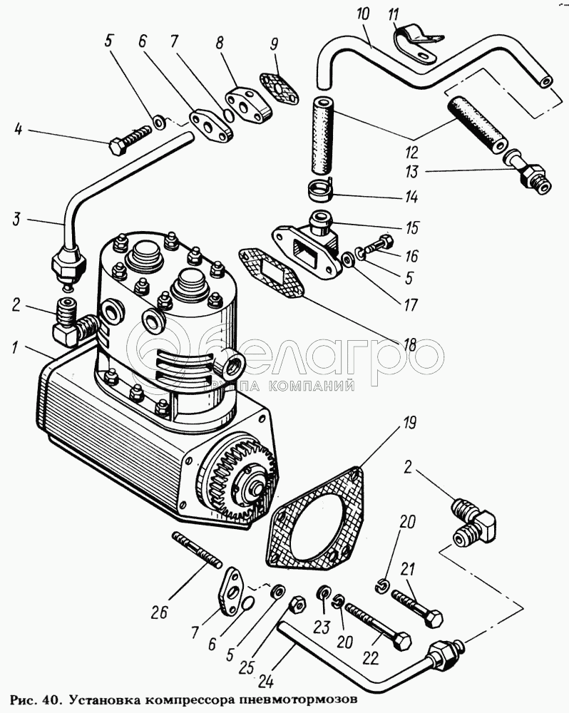 Каталог запасных частей к технике: ЯМЗ-8423.10. Установка компрессора пневмотормозов