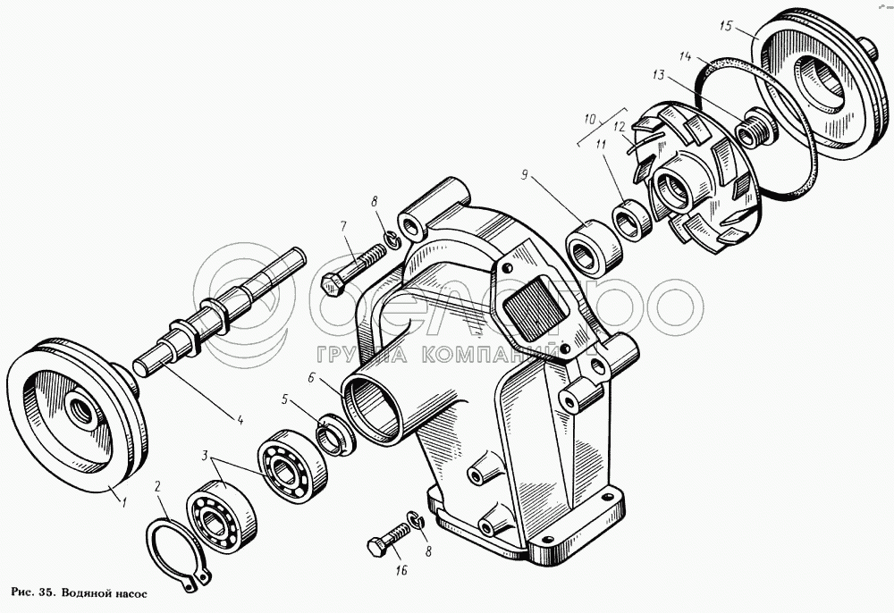 Каталог запасных частей к технике: ЯМЗ-8423.10. Водяной насос
