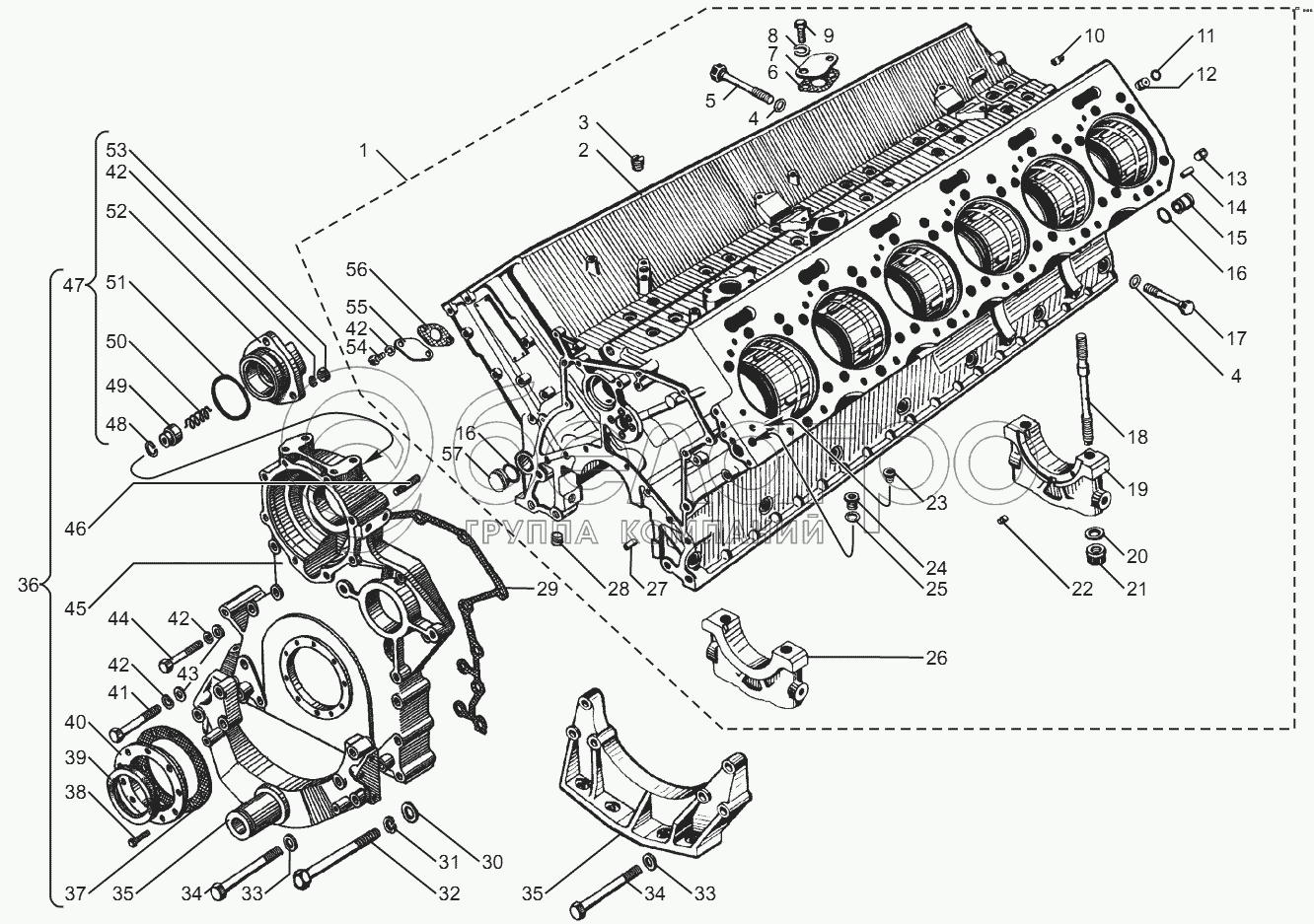 Каталог запасных частей к технике: ЯМЗ-850.10. Блок цилиндров