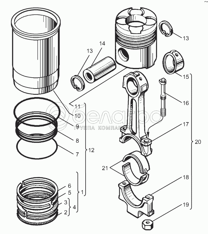 Каталог запасных частей к технике: ЯМЗ-850.10. Поршень и шатун