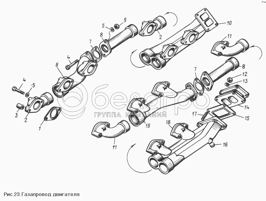Каталог запасных частей к технике: ЯМЗ-850. Газопровод двигателя