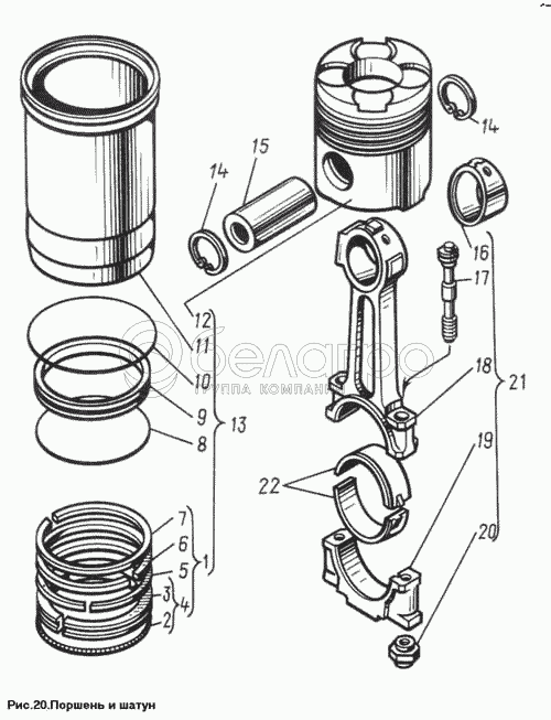 Каталог запасных частей к технике: ЯМЗ-850. Поршень и шатун