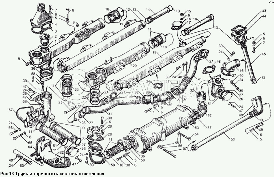 Каталог запасных частей к технике: ЯМЗ-850. Трубы и термостаты системы охлаждения