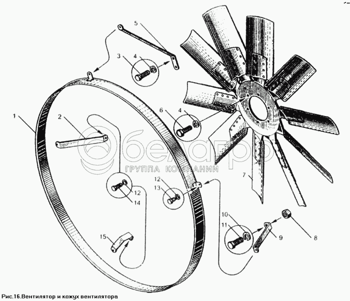 Каталог запасных частей к технике: ЯМЗ-850. Вентилятор и кожух вентилятора