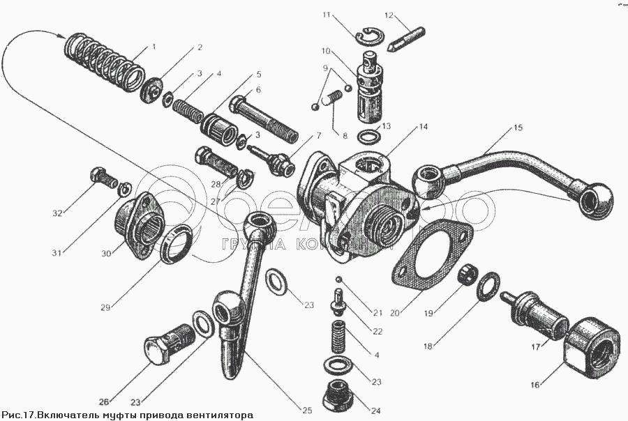 Каталог запасных частей к технике: ЯМЗ-850. Включатель муфты привода вентилятора