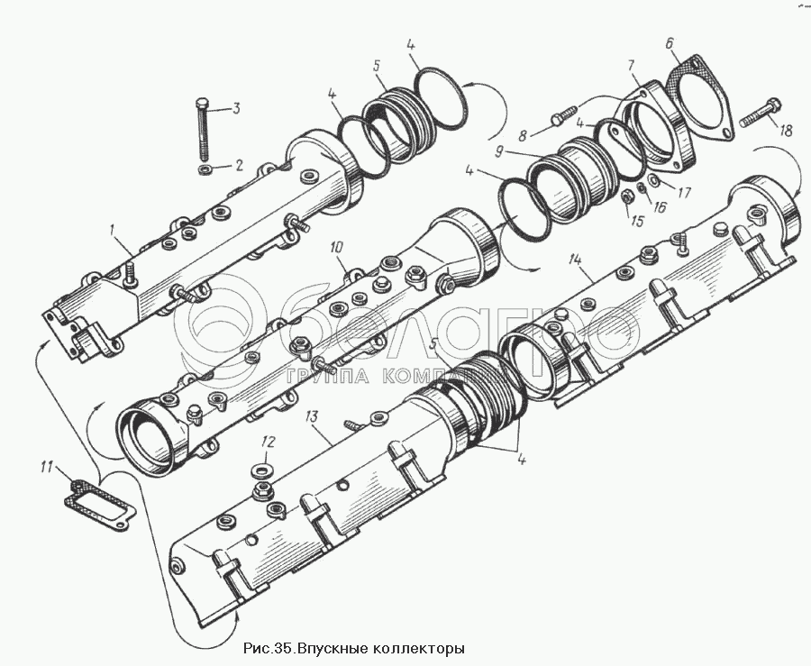 Каталог запасных частей к технике: ЯМЗ-850. Впускные коллекторы
