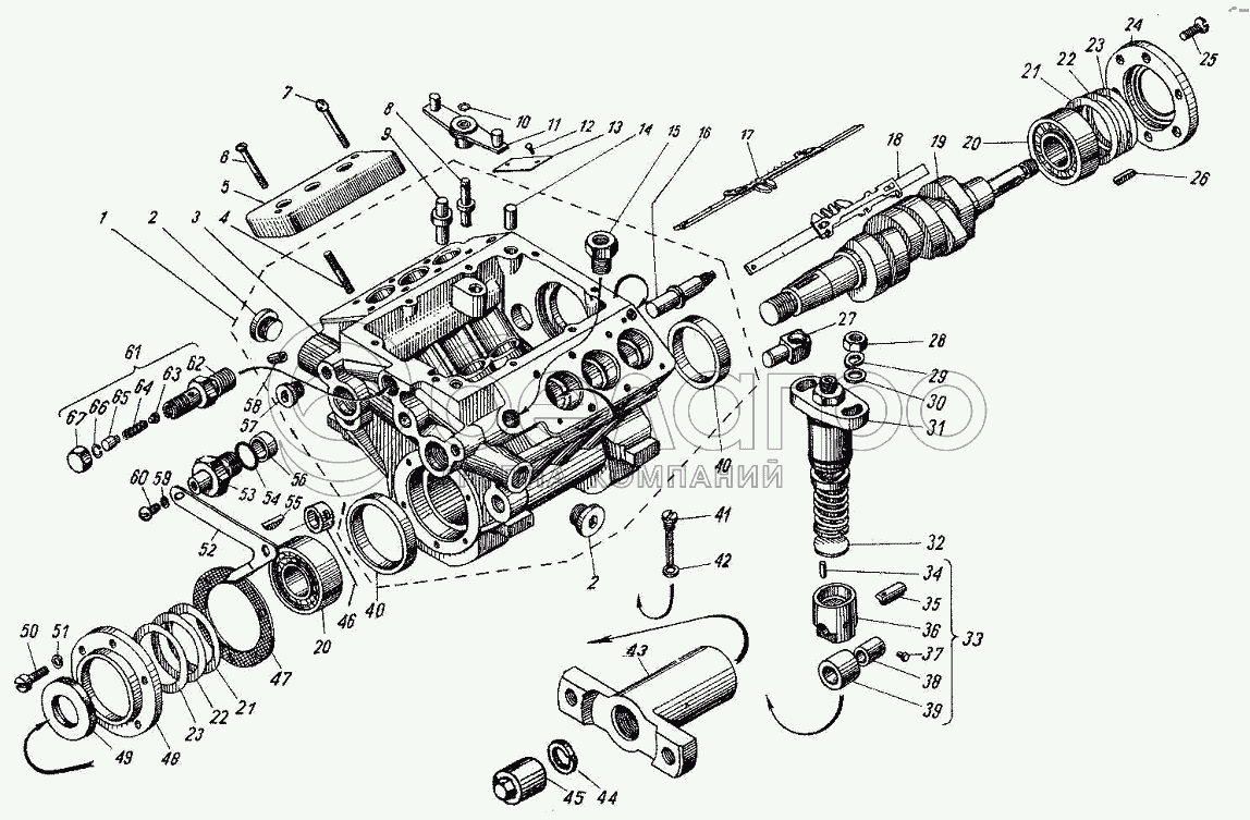 Каталог запасных частей к технике: ЯЗДА ТНВД-323, 324, 327. Корпус топливного насоса высокого давления