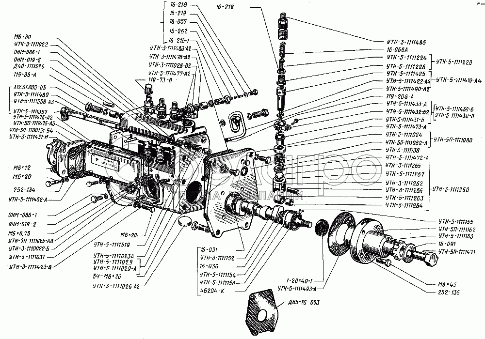 Каталог запасных частей к технике: ЮМЗ Д-65. Насос топливный унифицированный УТН-5П (правый)
