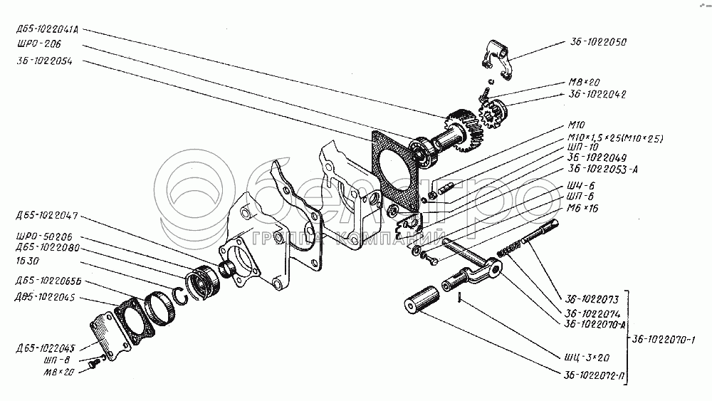 Каталог запасных частей к технике: ЮМЗ Д-65. Привод масляного насоса гидросистемы