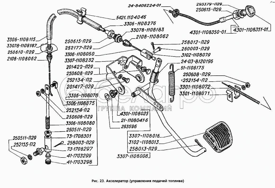 Каталог запасных частей к технике: ГАЗ-3306. Акселератор (управления подачей топлива)