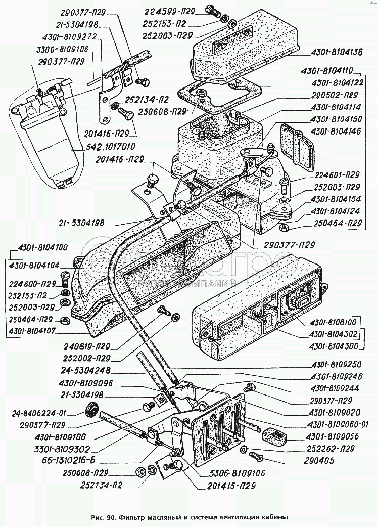 Каталог запасных частей к технике: ГАЗ-3306. Фильтр масляный и система вентиляции кабины