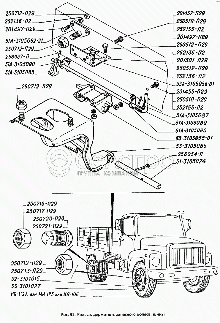 Каталог запасных частей к технике: ГАЗ-3306. Колеса, держатель запасного колеса, шины