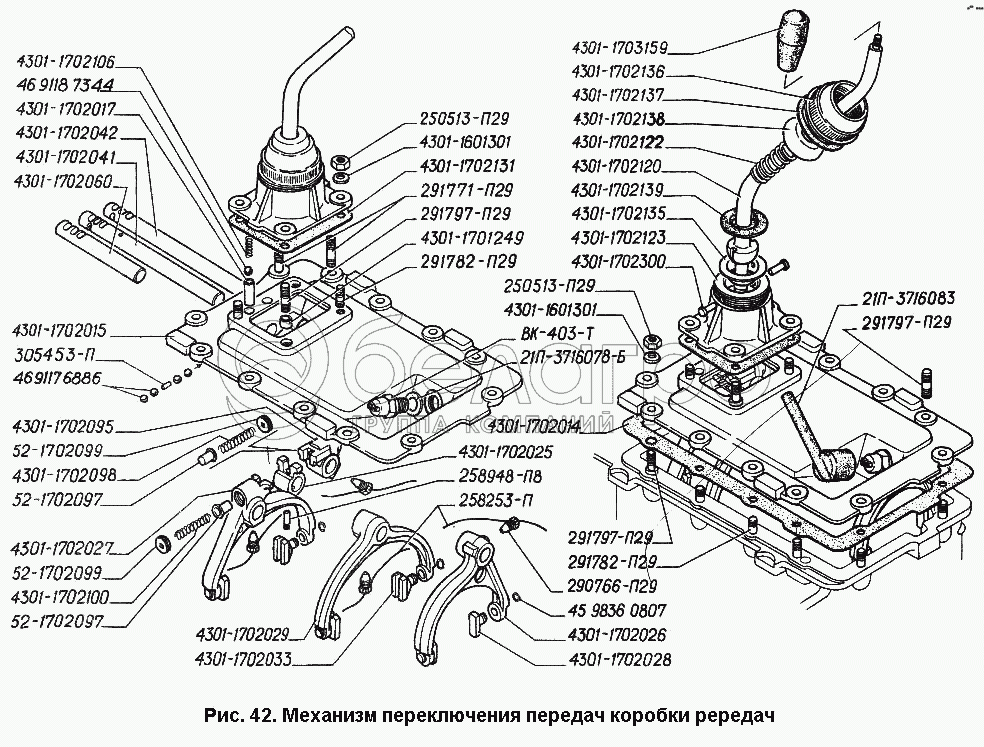 Каталог запасных частей к технике: ГАЗ-3306. Механизм переключения передач коробки передач