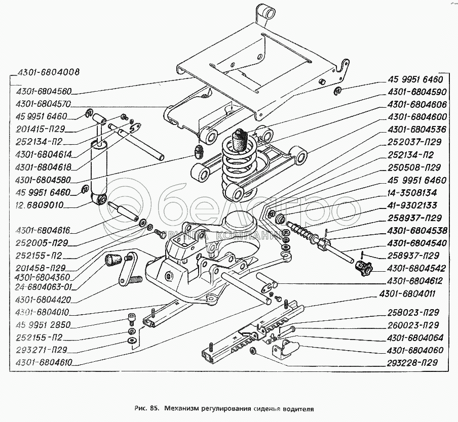 Каталог запасных частей к технике: ГАЗ-3306. Механизм регулирования сиденья водителя