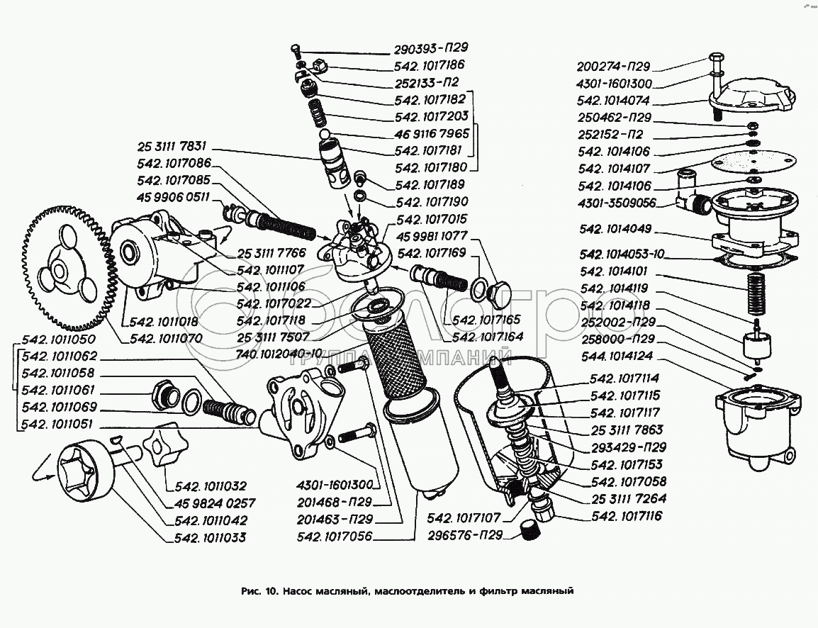 Каталог запасных частей к технике: ГАЗ-3306. Насос масляный, маслоотделитель и фильтр масляный