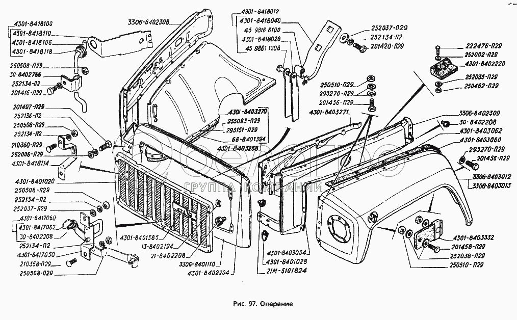 Каталог запасных частей к технике: ГАЗ-3306. Оперение