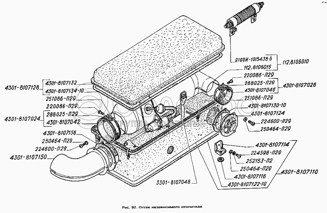 Каталог запасных частей к технике: ГАЗ-3306. Отсек независимого отопителя